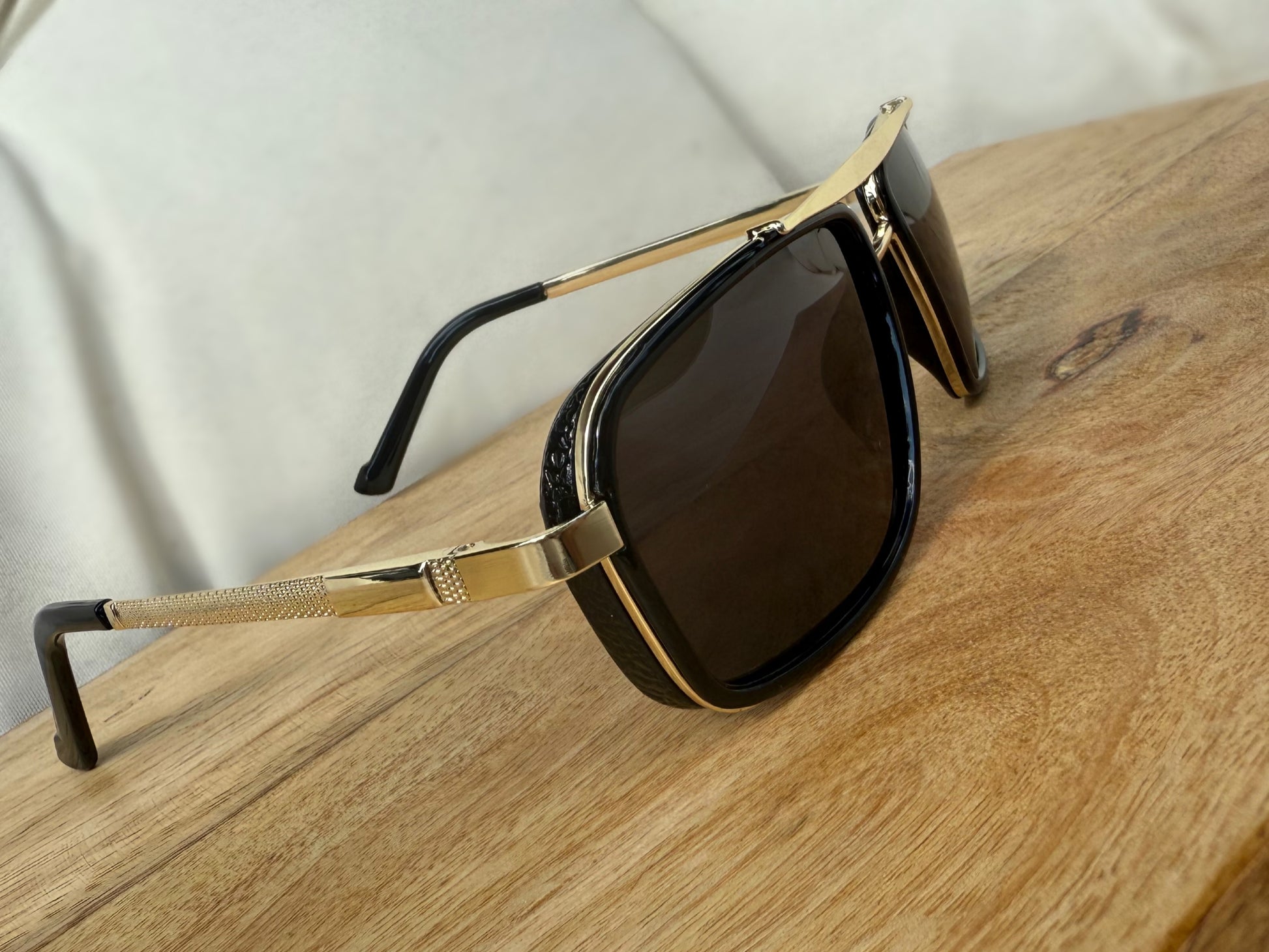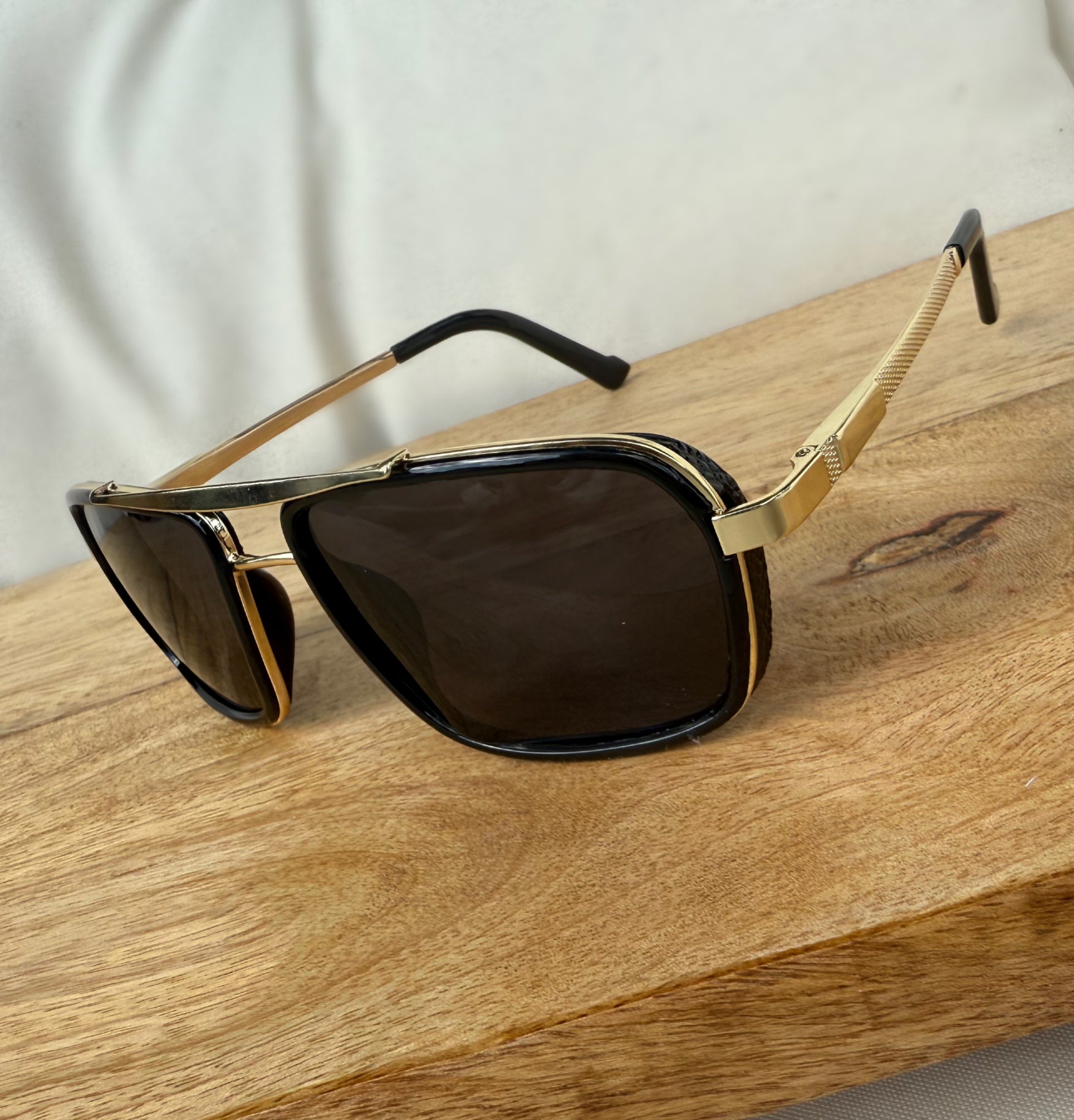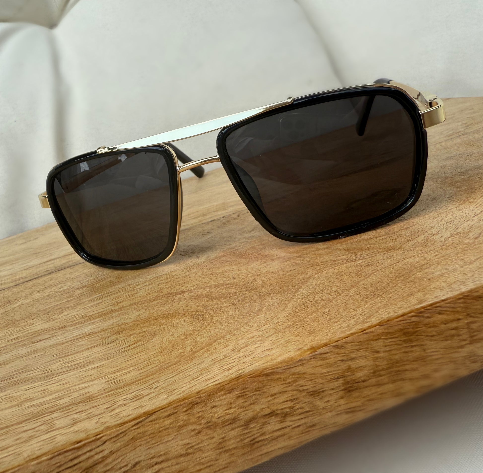 Unisex gold rim sunglasses with Polarized lens.